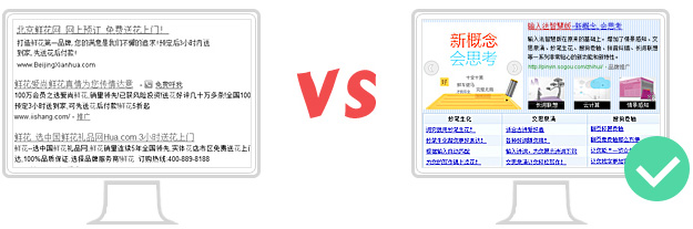 告別枯燥的文字表達,使用圖文并茂的展現(xiàn)樣式,在提升網(wǎng)民搜索體驗的同時,讓品牌形象深入人心!
